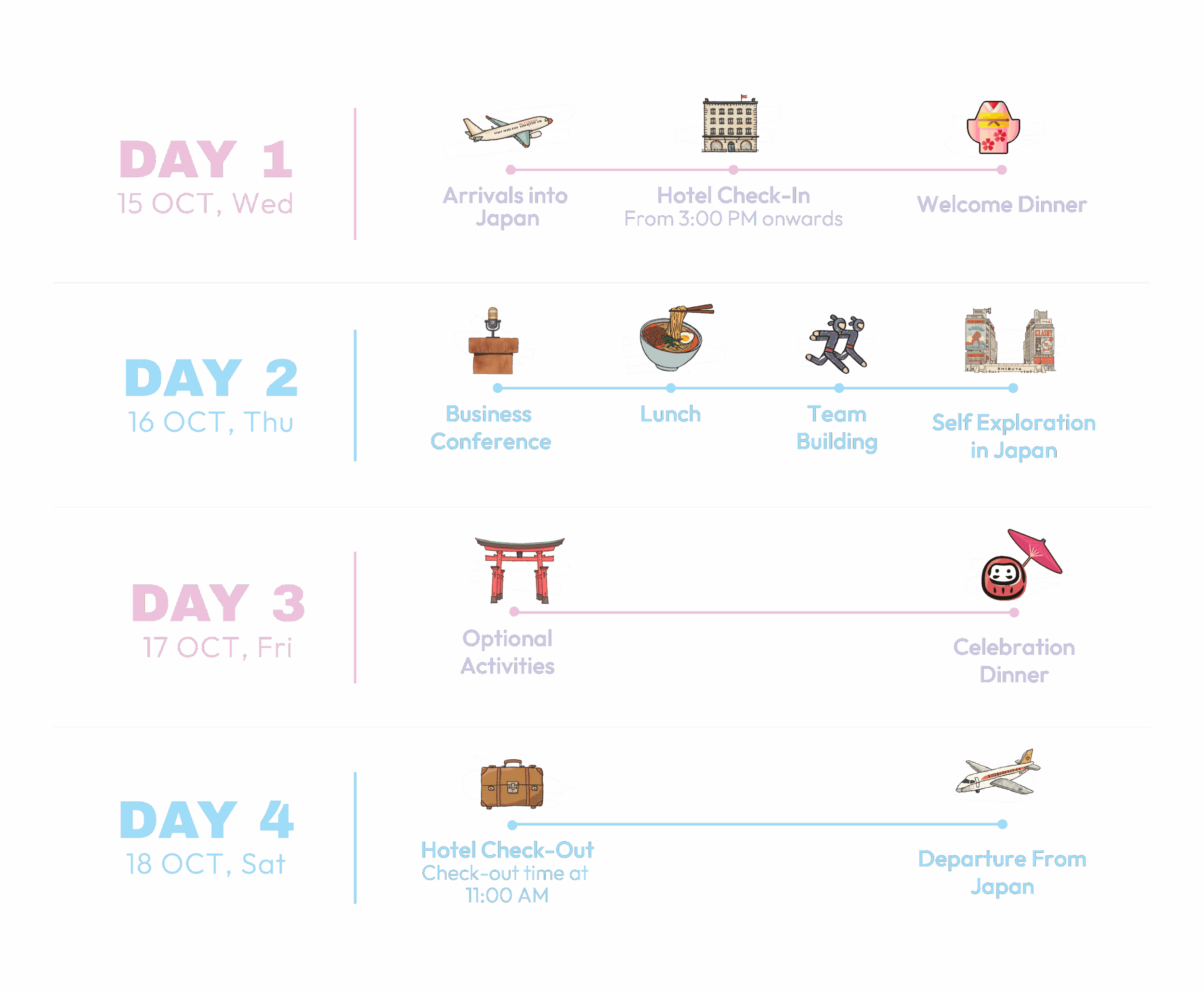 - All participants are assigned a single-occupancy room at the Hyatt Regency Tokyo